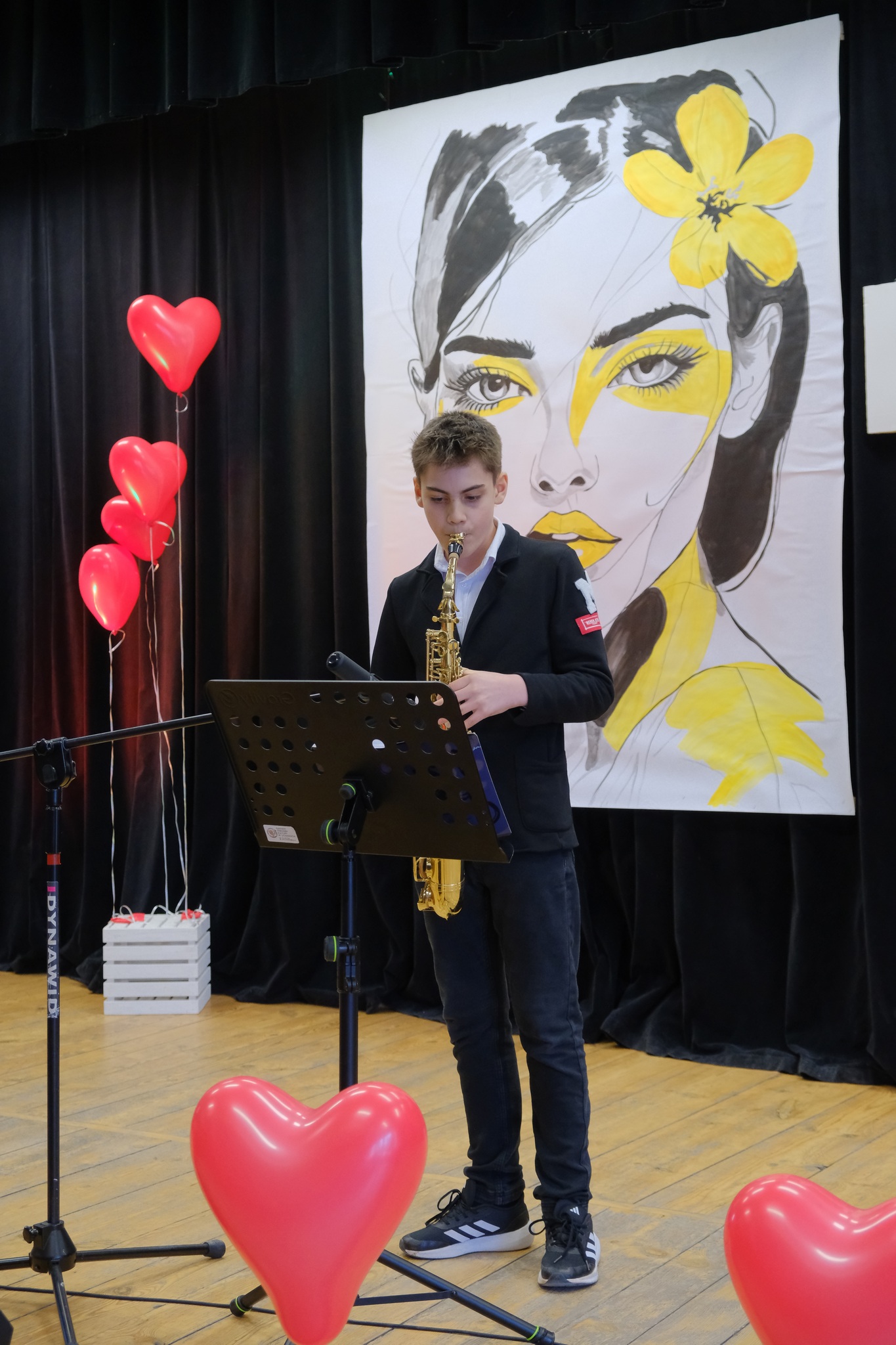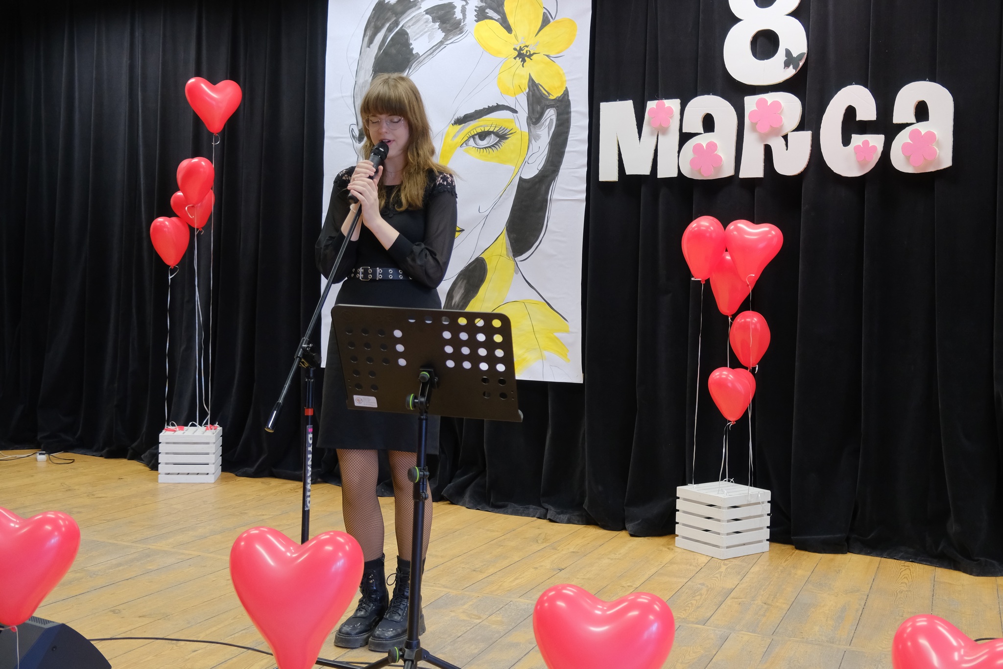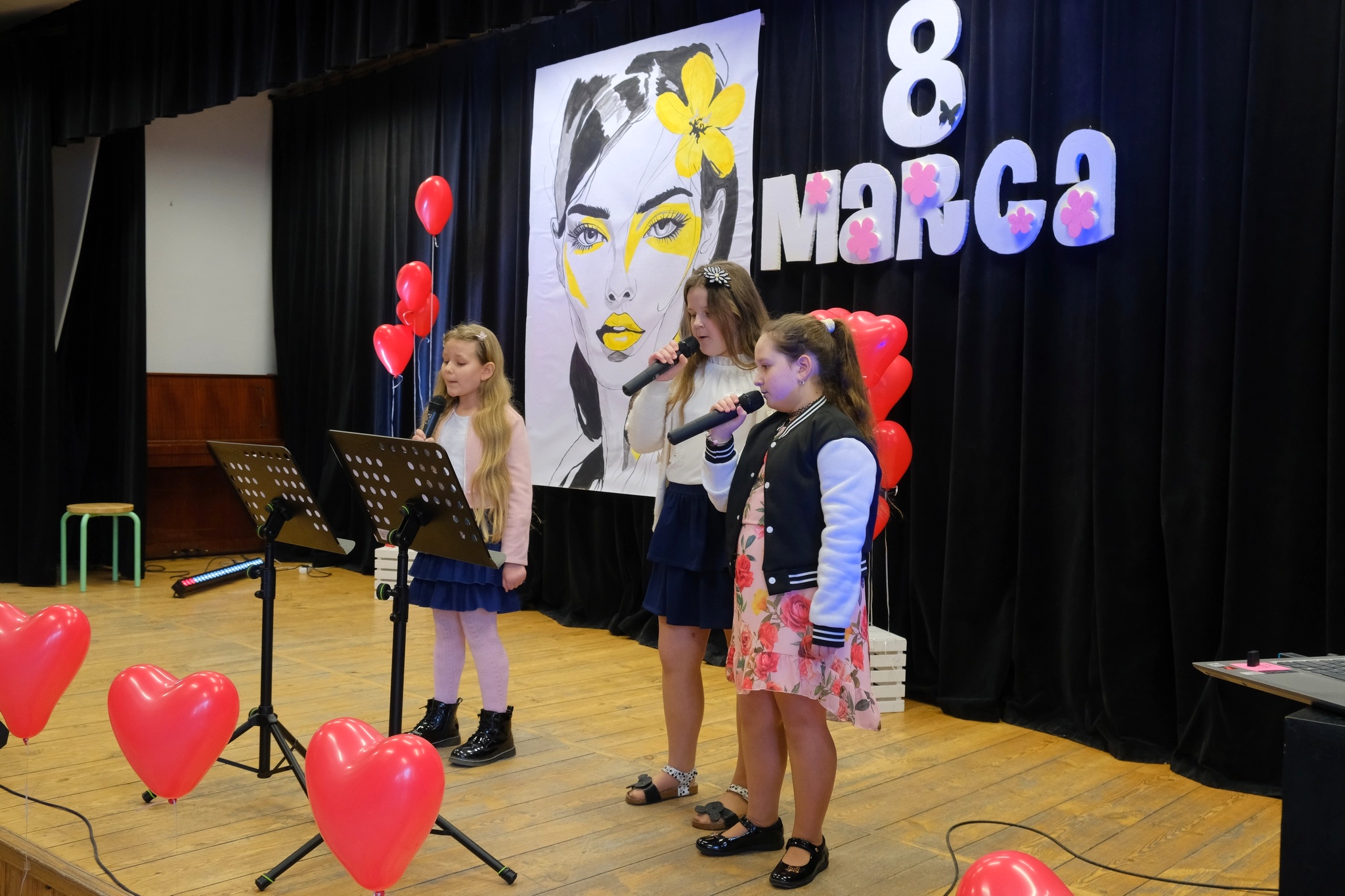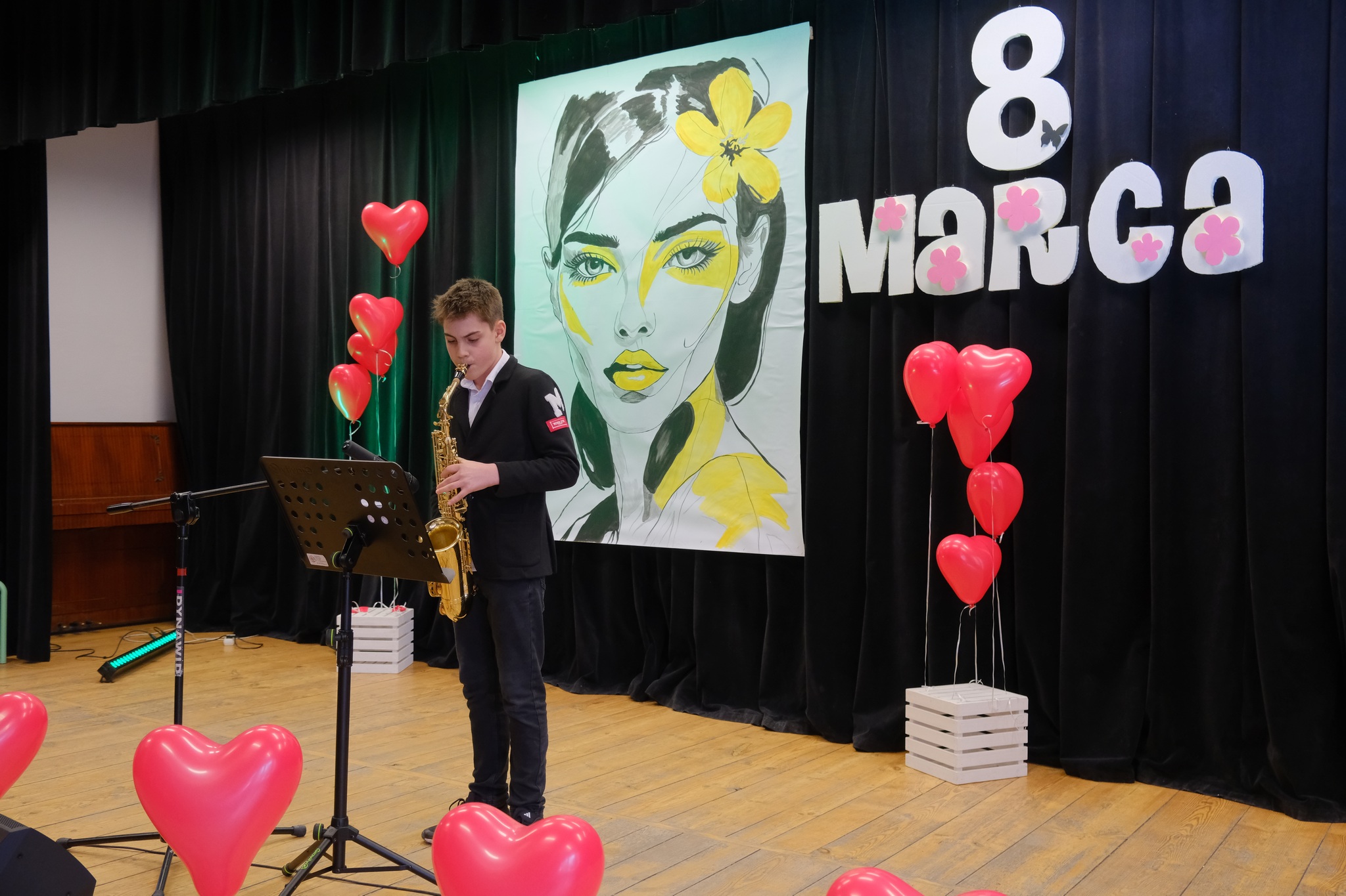 Występy sceniczne otworzył zespół wokalny „Staszicowska Zorza” z GOK w Uchaniach, którego członkowie zaprezentowali utwory oddające klimat i emocje towarzyszące świętu kobiet. Następnie publiczność mogła wysłuchać brzmienia saksofonu, na którym zagrał młody, obiecujący muzyk Michał Serafin. Kolejnym punktem programu był sentymentalny koncert Martyny Hajduk, która zachwyciła wszystkich swoim talentem wokalnym oraz grą na gitarze. Na zakończenie swojego występu wystąpiła również w duecie ze swoją młodszą siostrą Faustyną. Występy zakończyła Młodzieżowa Grupa Wokalna „Zawsze Razem” z GOK w Uchaniach, która swoim występem podbiła serca publiczności.