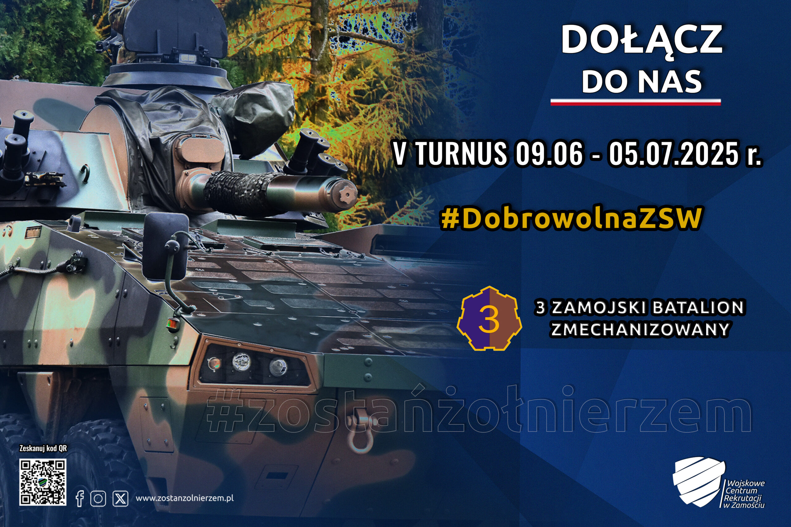 Dla wszystkich, którzy myślą o związaniu swojej przeszłości z wojskiem lub chcą zdobyć cenne umiejętności militarne, otwiera się wyjątkowa możliwość. W Wojskowym Centrum Rekrutacji w Zamościu trwają zapisy na V turnus Dobrowolnej Zasadniczej Służby Wojskowej, który odbędzie się w dniach 09.06 – 05.07.2025 r. w 3 batalionie zmechanizowanym w Zamościu.